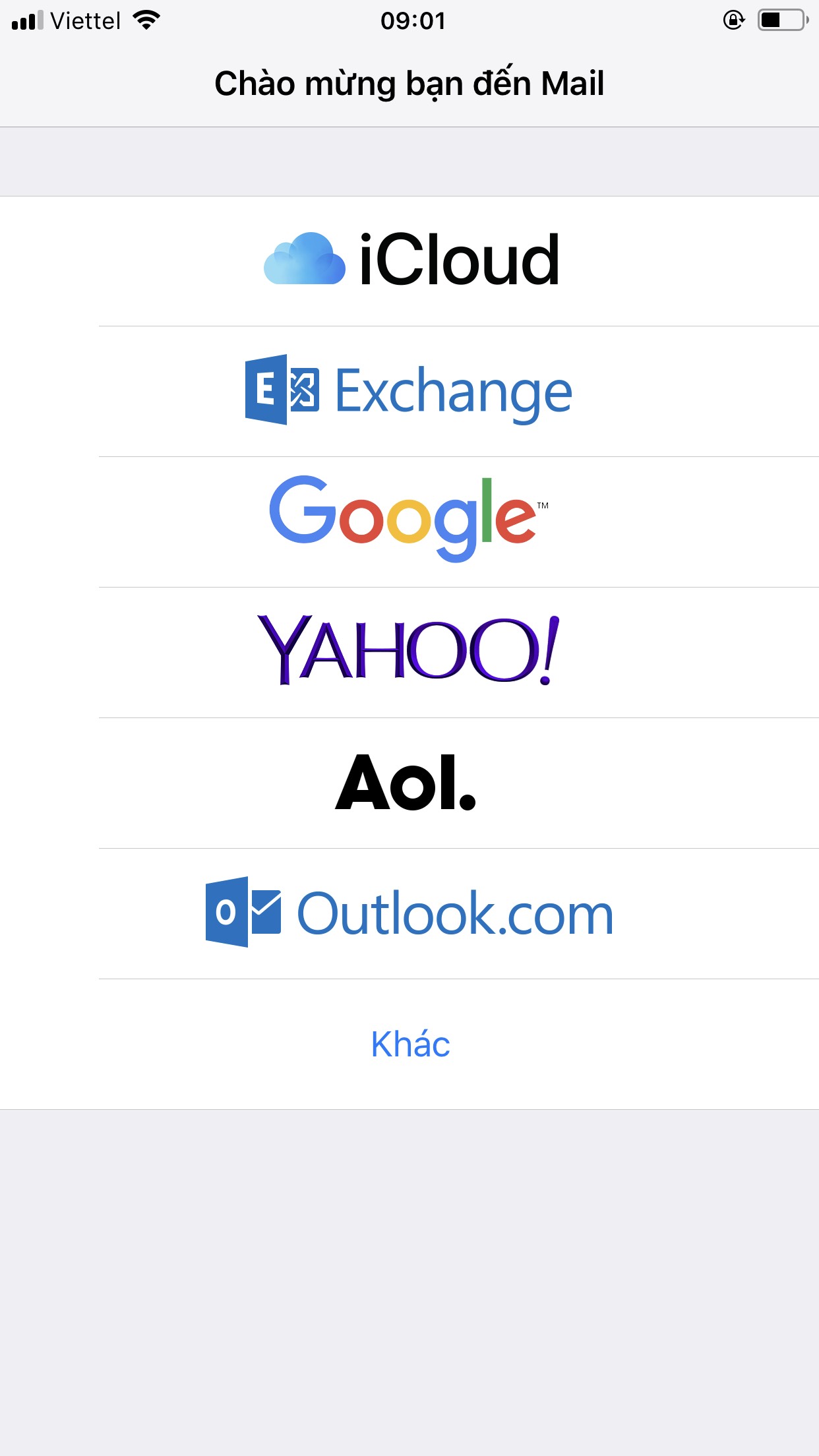 Trên điện thoại sẽ xuất hiện hộp thoại đăng nhập các lọai Email server , chọn Khác:
