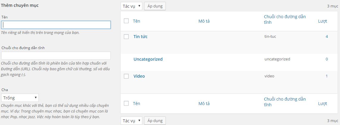 Khi thêm chuyên mục :