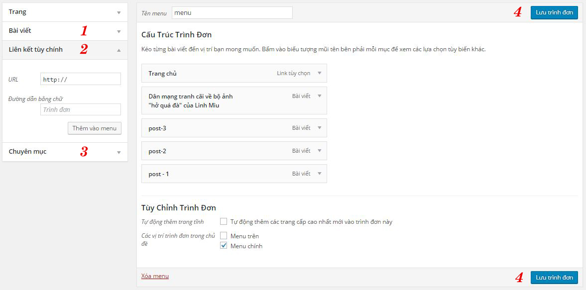 • 3 : Thêm chuyên mục vào menu