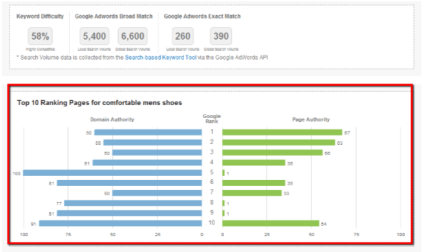 Kết quả trả về là những thông tin hữu ích liên quan đến từ khóa đó, như là số lượng tìm kiếm trong khu vực cũng như số lượng tìm kiếm toàn cầu và phần trăm độ cạnh tranh của từ khóa đó. Tuy nhiên, mặc dù những thông tin này rất hữu ích, thông tin còn hữu ích hơn là danh sách 10 trang web ở top đầu, cùng với điểm uy tín của các domain và điểm uy tín của trang web đó