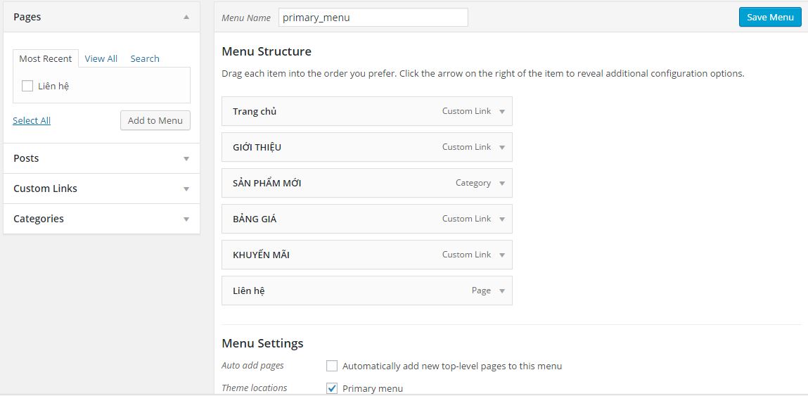 Chọn menu cần thêm ở trên những thành phần trong hình: